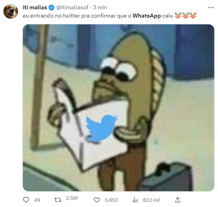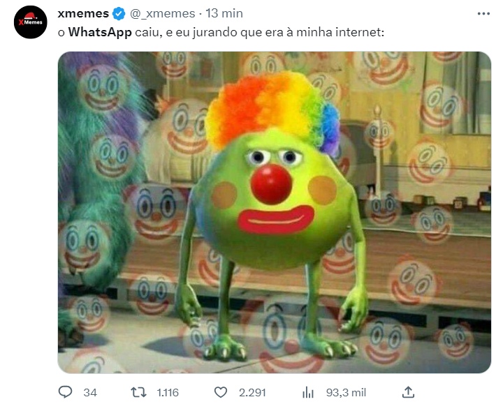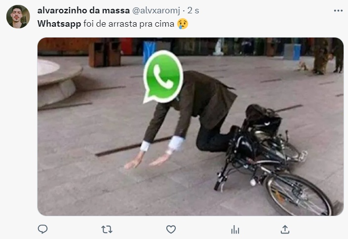 Com a instabilidade, usuários foram correndo para o Twitter para conferir se de fato o app de mensagens caiu e fazer memes com a situação, veja alguns deles: