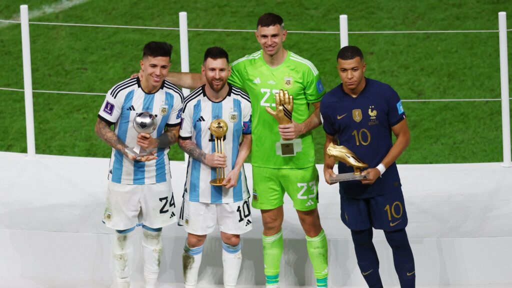 Após a Argentina se consolidar campeã da Copa do Mundo de maneira eletrizante sobre a França, nos pênaltis neste domingo (18), a Fifa divulgou os prêmios individuais da competição no Qatar. Lionel Messi foi eleito o craque do Mundial e ganhou a Bola de Ouro. Mbappé da França terminou como o segundo melhor e Modric da Croácia em terceiro.