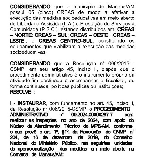 Para realizar a inspeção em todos os Creas, o MPAM instaurou procedimento administrativo nº 09.2024.00000287-7, com apoio do Núcleo de Atendimento Técnico do Ministério Público.