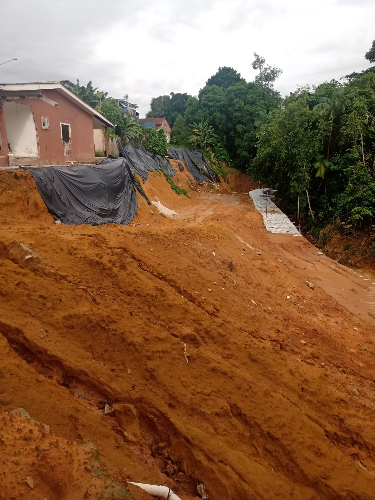 O novo prazo dado pela Prefeitura é da conclusão dos trabalhos em março de 2024. Enquanto isso, as casas acumulam rachaduras e seus proprietários torcem para que as chuvas sejam brandas. Morador da rua Umberto Lobato há mais de 30 anos, Licínio Santos relatou que há muitos anos entrou com contato com a Prefeitura, explicando o problema, ainda em fase inicial, porém nada foi feito. No lado em que ele mora a erosão devastou a área verde do conjunto.