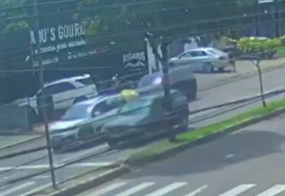 Uma câmera de segurança instalada na região registrou o momento em que o motociclista chega na faixa de pedestre em alta velocidade e não percebe o carro que está parado na sua frente, colide com o veículo e é arremessado.