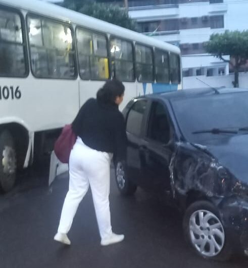 Na manhã deste domingo (12), por volta das 6h, um veículo colidiu contra um ônibus da linha 550 entre as avenidas Paraíba e Maneca Marques, próximo ao CSU do Parque 10, zona Sul de Manaus.