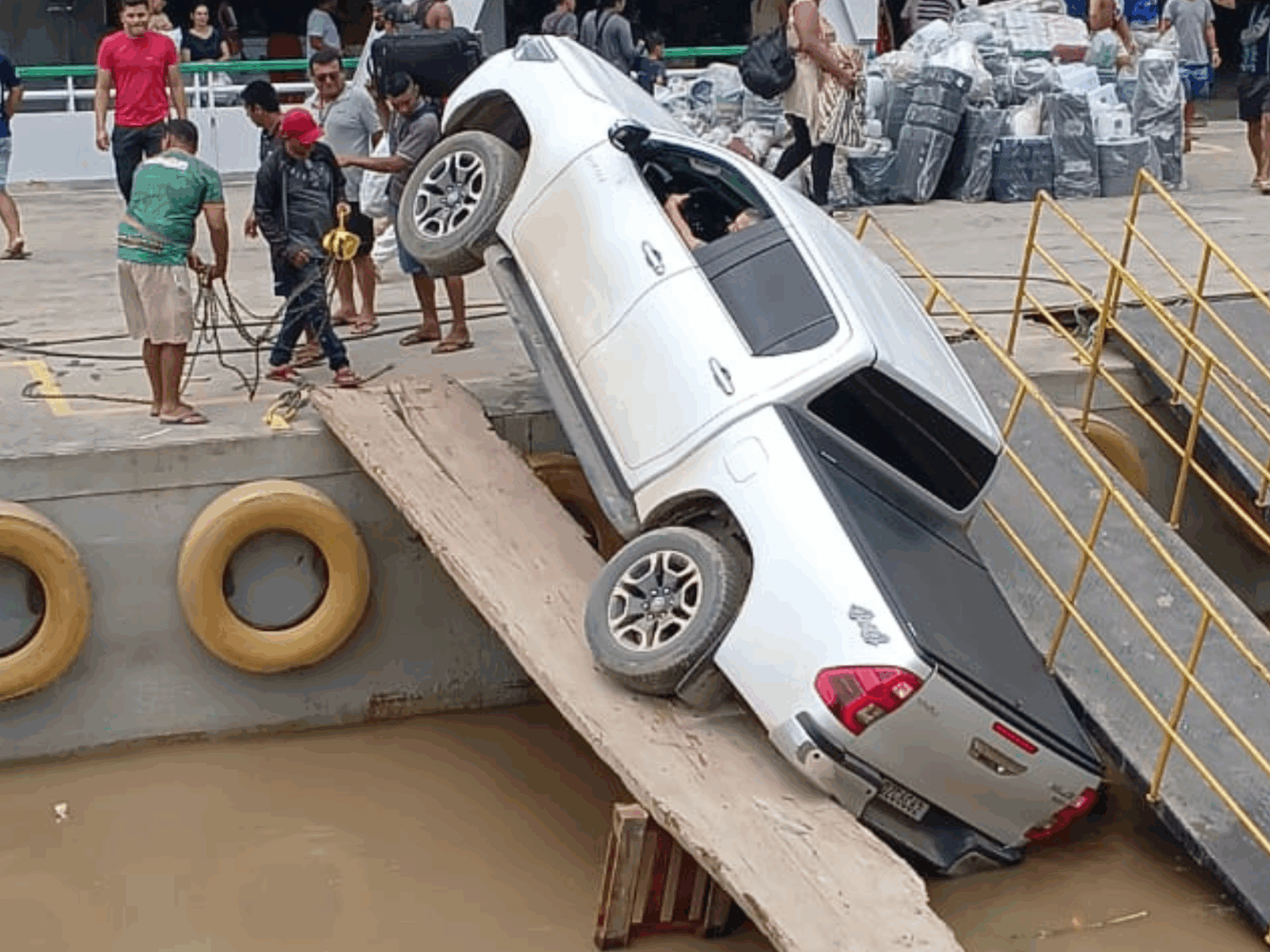 Na manhã desta segunda-feira (1º), um motorista tentou embarcar com uma picape sobre uma rampa improvisada de pranchas de madeira no porto de Manicoré, às margens do rio Madeira, quando o veículo despencou na água. Segundo relatos, ele acelerou antes que as tábuas aguentassem o peso, provocando o desabamento parcial da estrutura. Manicoré está localizada a cerca de 330 quilômetros de Manaus em linha reta.