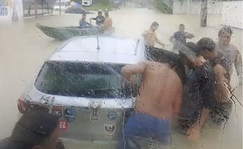 Em um dos registros, feito por um passageiro dentro de um caminhão, é possível ver homens tentando agir no meio do alagamento. Durante a gravação, uma canoa passa pela via, evidenciando a intensidade da inundação. Na filmagem, o autor comenta: “um rio bem no meio da cidade”.