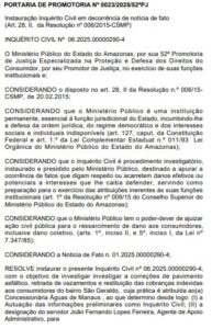 O Ministério Público do Estado do Amazonas (MP-AM), por meio da 52ª Promotoria de Justiça Especializada na Proteção e Defesa dos Direitos do Consumidor, instaurou um Inquérito Civil e um Procedimento Administrativo para apurar denúncias de irregularidades na prestação dos serviços da Águas de Manaus no bairro São José, zona Leste de Manaus.