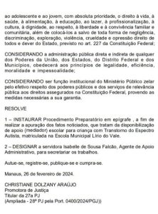 Os procedimentos foram assinados pela promotora de Justiça Christiane Dolzany Araújo, e divulgados no Diário Oficial do MPAM.