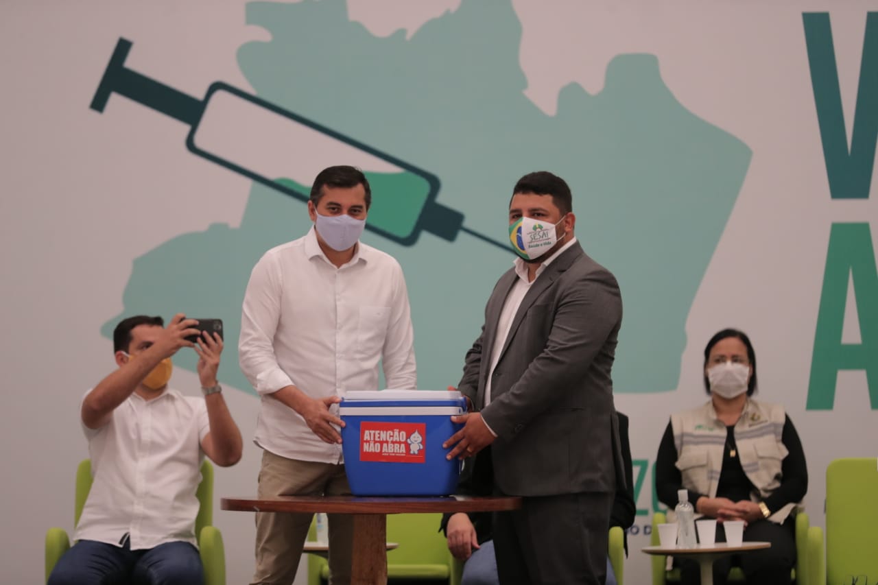 “Estamos recebendo 256 mil doses do Governo Federal, são doses do Instituto Butantan que serão aplicadas em dois momentos, uma primeira dose agora e a segunda dose daqui a 28 dias. Conversei com o ministro (da Saúde), que já sinalizou a possibilidade de chegada no Brasil, ainda esta semana, de mais de 2 milhões de doses vindas da Índia que são da Astrazeneca, e voltei a fazer um apelo pra que houvesse uma sensibilização de destinar a maior quantidade possível de doses para o Amazonas. Nós precisamos imunizar a maior quantidade possível de pessoas no Estado”, explicou o governador Wilson Lima.