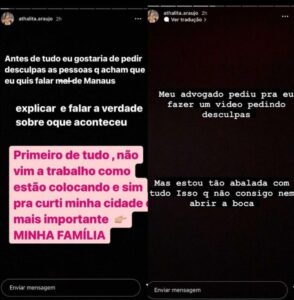 Em outro momento, Thalita pede desculpa aos manauaras. “Antes de tudo eu gostaria de pedir desculpas as pessoas que acham que eu quis falar mal de Manaus. Vou explicar e falar a verdade sobre o que aconteceu. Primeiro de tudo não vim a trabalho como estão colocando e sim para curtir minha cidade mais importante, minha família”, destacou.