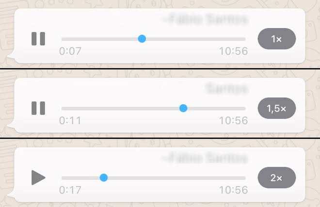 Para acelerar a conversa, basta o usuário baixar a mensagem de voz desejada e apertar a velocidade que deseja no botão que aparece no áudio com 1.0x, 1,5x e 2,0X mais rápido.