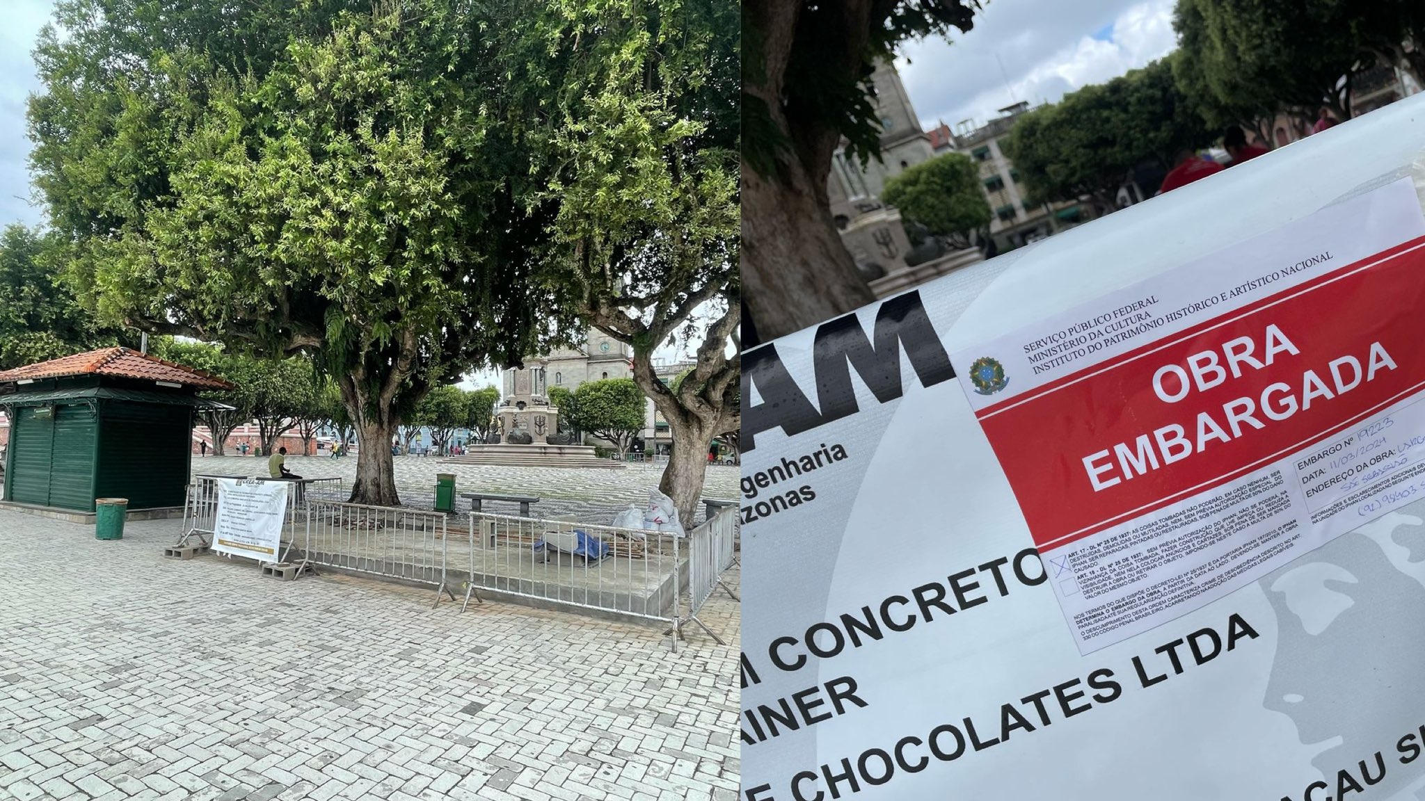 A construção de um quiosque para a comercialização de doces, que estava sendo iniciada no largo de São Sebastião, nas proximidades do Teatro Amazonas, foi embargada nesta segunda-feira (11) pelo Instituto Municipal de Planejamento Urbano (Implurb). O embargo ocorreu em resposta a uma denúncia sobre a irregularidade da obra, que não possuía licença ou autorização para intervenção no local.
