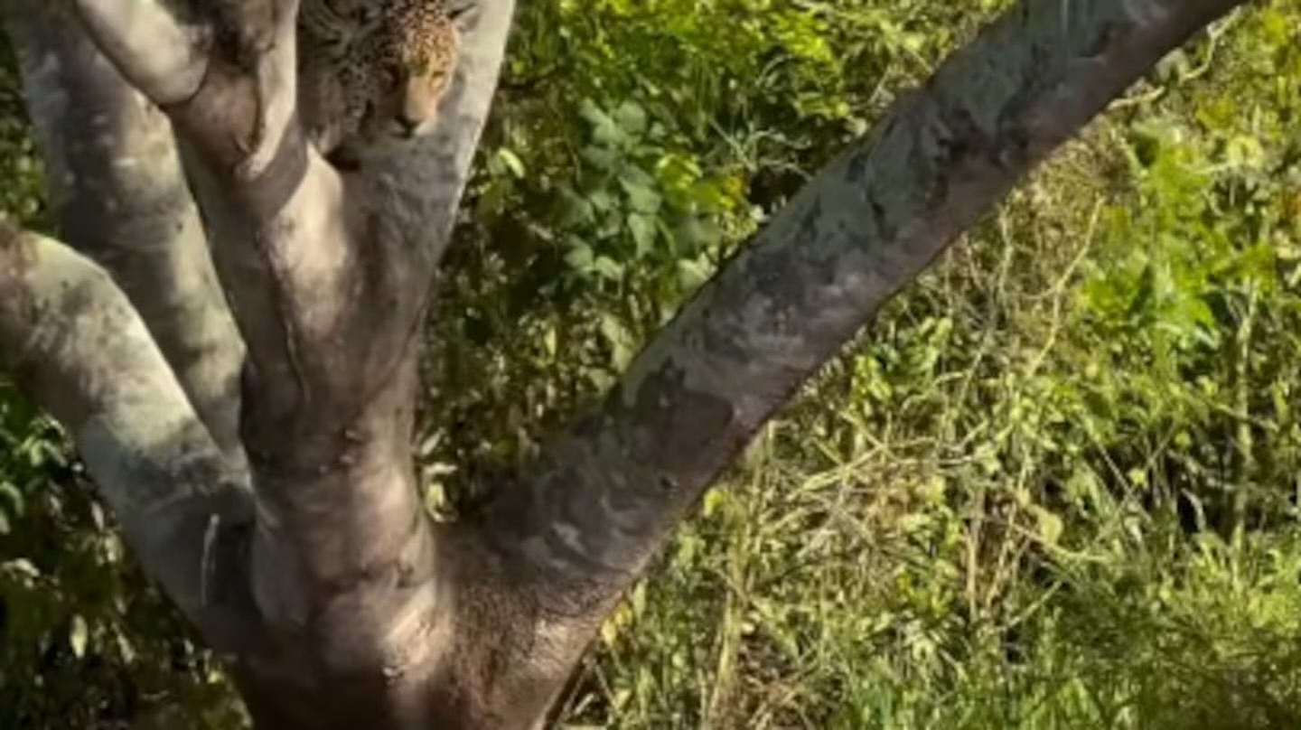 No vídeo, é possível ver o momento em que a onça aguarda em uma árvore para realizar o ataque. Ao avistar a presa, ela realiza um salto impressionante, iniciando uma verdadeira briga selvagem. Os dois animais chegam a ficar submersos por alguns segundos.