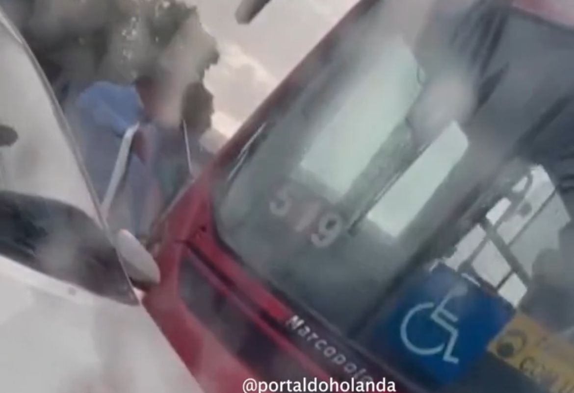 Em um vídeo divulgado nas redes sociais, capturado por uma testemunha, o motorista do carro ficou revoltado com a situação. O homem chegou a sair do veículo e, exaltado, xingou o condutor do ônibus na via pública.