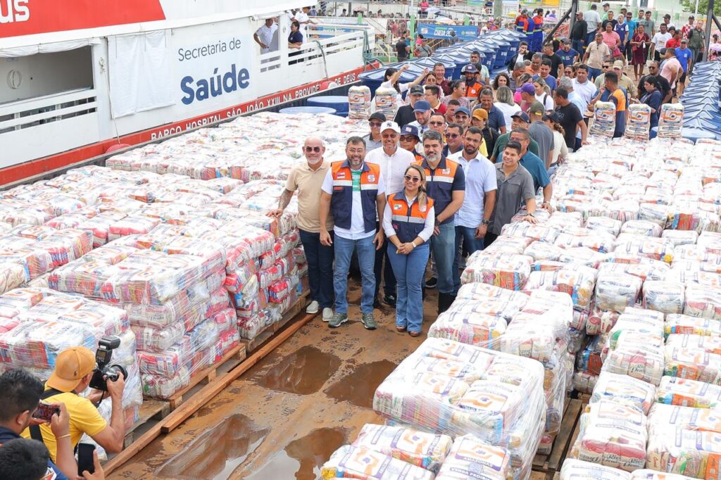 O governador Wilson Lima realizou, nesse sábado (14), a entrega de 2 mil cestas de alimentos, cerca de 40 toneladas de produtos essenciais, para a população do município de Anamã (distante 165 quilômetros de Manaus). Durante as ações, que integram a Operação Cheia 2025, o governador visitou casas do município e entregou pessoalmente a ajuda humanitária para famílias afetadas pela enchente do rio Solimões.