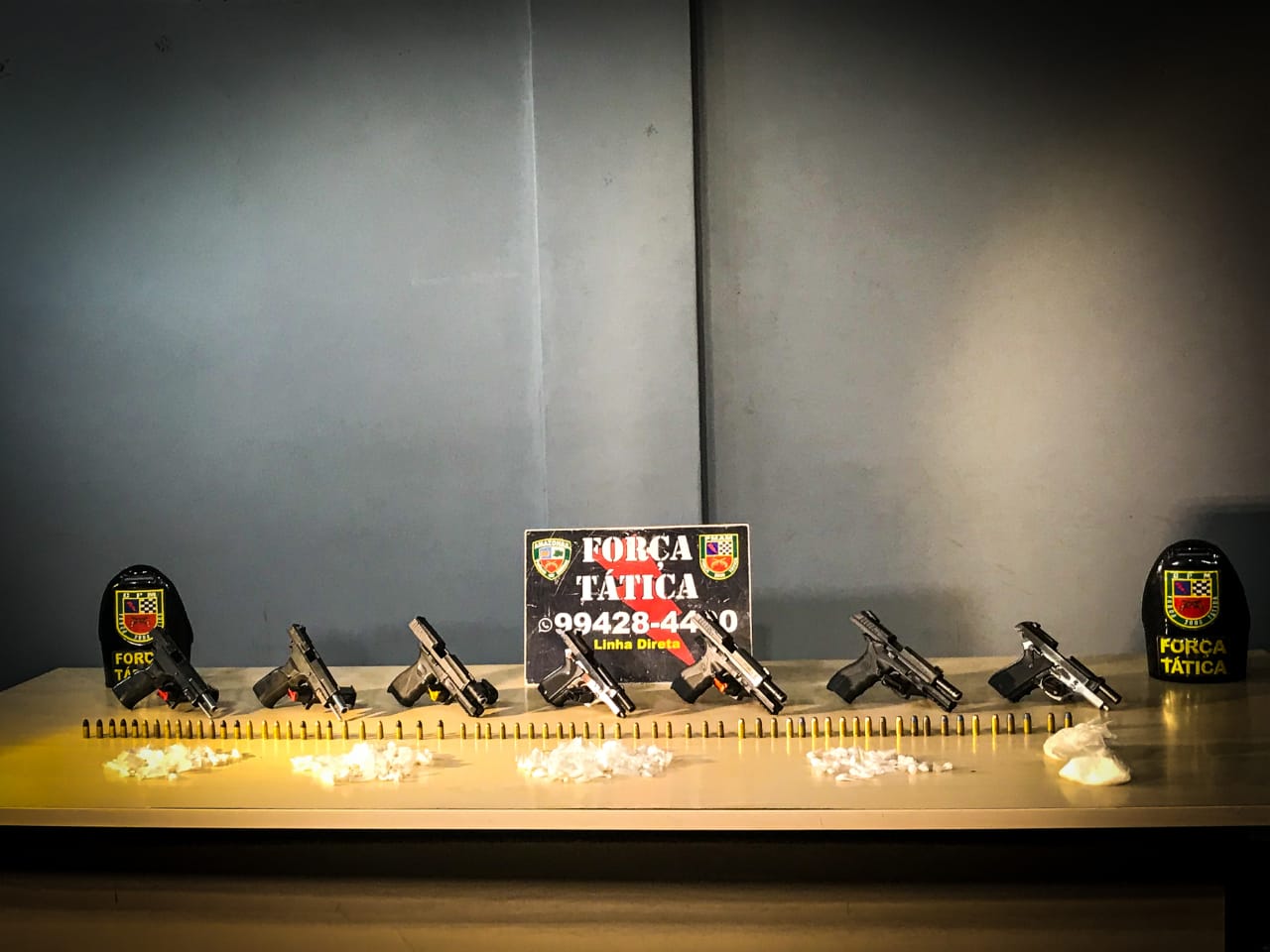 “Pelo número de armas de fogo, são sete pistolas de grosso calibre, poderia resultar em várias mortes de pessoas ligadas ao tráfico, de facção rival, de bando criminoso rival, bem como também de inocentes que ali residem. E não só destacar a questão do potencial letal desse tipo de ação, como também tirar o sossego da população que ali residem”, explicou o major Igor Reis, comandante da Força Tática.