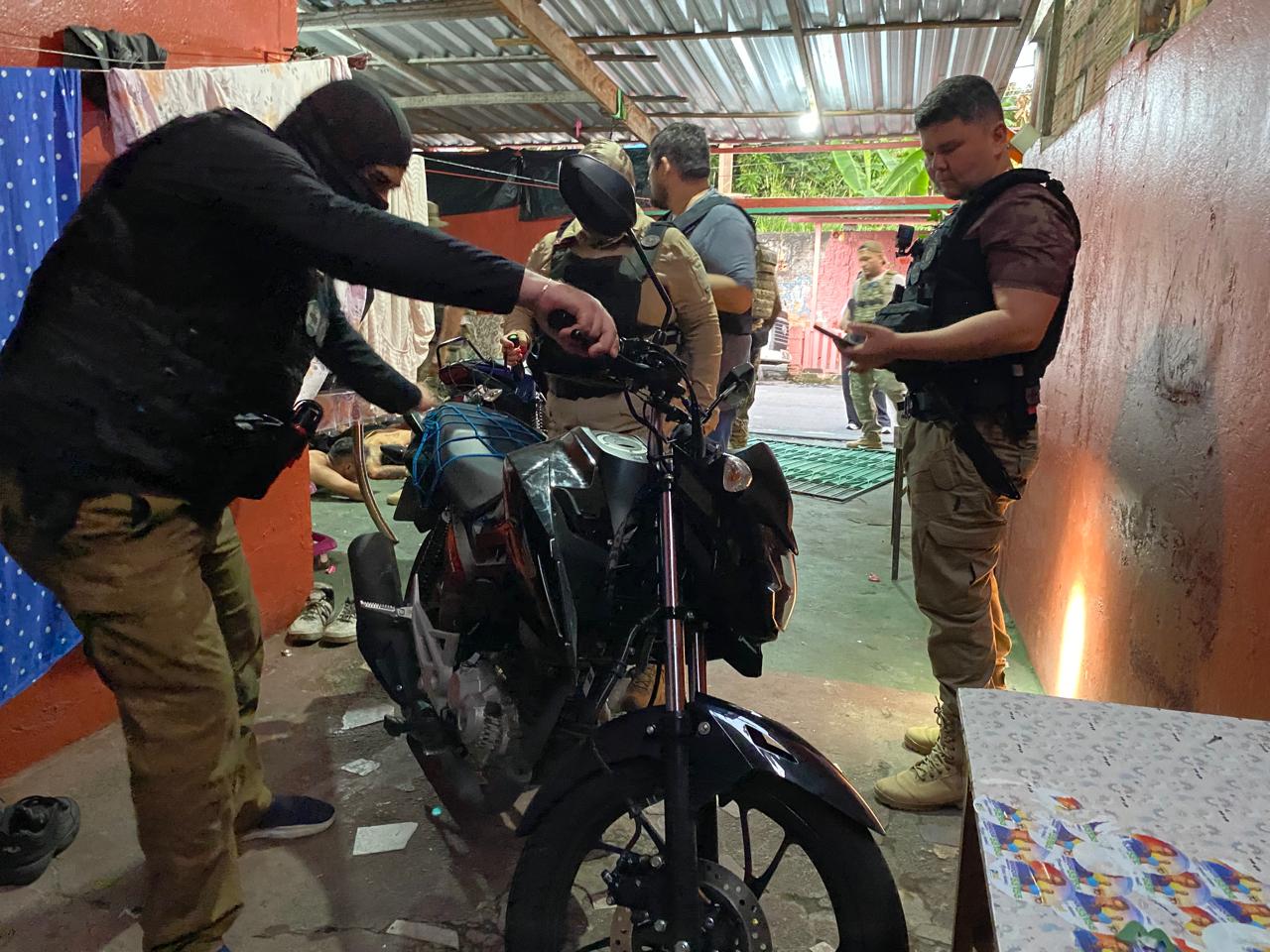 “Nós viemos aqui cumprir o mandado de prisão preventiva do Rayson. Eles, juntamente com um bando, realizaram um roubo em Adrianópolis, próximo a uma academia, onde levaram um cordão de ouro e o celular da vítima. Eles vêm cometendo vários roubos na cidade. Chegamos aqui e encontramos três motocicletas que foram levadas para o núcleo, juntamente com várias pessoas de atitude suspeita”, detalhou o delegado.