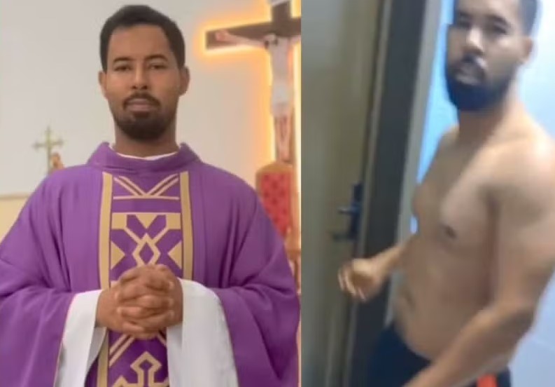 Conforme o vídeo que repercutiu nas redes sociais e na cidade, que tem pouco mais de 5,8 mil habitantes, o padre tenta se justificar e impede a entrada dos familiares no banheiro do quarto. Após arrombamento, a moça é pega tentando se esconder em baixo da pia do cômodo.