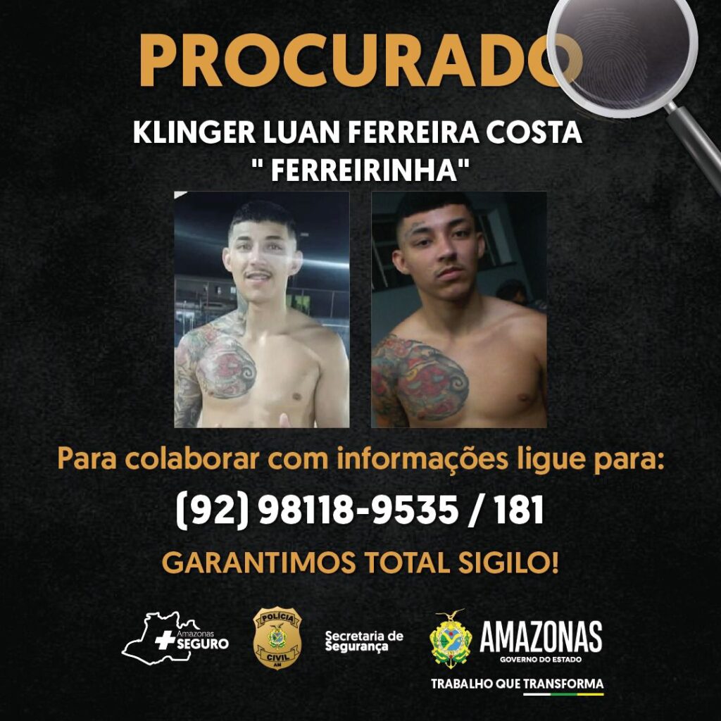 Três homens identificados como Klinger Luan Ferreira Costa (Ferreirinha), Francisco de Oliveira Galvão Neto e Ayan Ferreira de Souza estão sendo procurados como suspeitos de participarem no linchamento que resultou na morte de um motorista, de 55 anos, na avenida Autaz-Mirim, zona Leste de Manaus. Outros motociclistas envolvidos no crime ainda estão sendo identificados.
