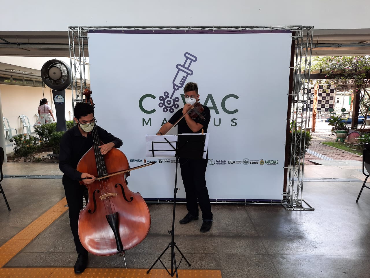 Unindo arte e ciência em um cenário inédito de pesquisa no Amazonas, a Escola Superior de Artes e Turismo da Universidade do Estado do Amazonas (Esat/UEA) iniciou, nesta semana, uma série de apresentações musicais na Escola Normal Superior (ENS/UEA) onde acontece neste momento o estudo “CovacManaus”. A pesquisa visa identificar se a antecipação da vacina em pessoas com comorbidades terá impacto na prevenção das formas graves da Covid-19.