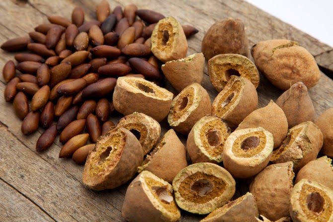 Considerado um dos símbolos do cerrado, o baruzeiro oferece uma castanha que esbanja nutrientes. Rica em ferro e zinco, dupla que atua no combate à anemia, ela ainda concentra proteína. Pelo sabor parecido com o do amendoim, serve como matéria-prima da paçoca e do pé-de-moleque, entre outras delícias das quituteiras goianas. Mas, como é espécie nativa de uma das regiões mais debeladas pelo desmatamento, requer práticas sustentáveis para não sumir do mapa.