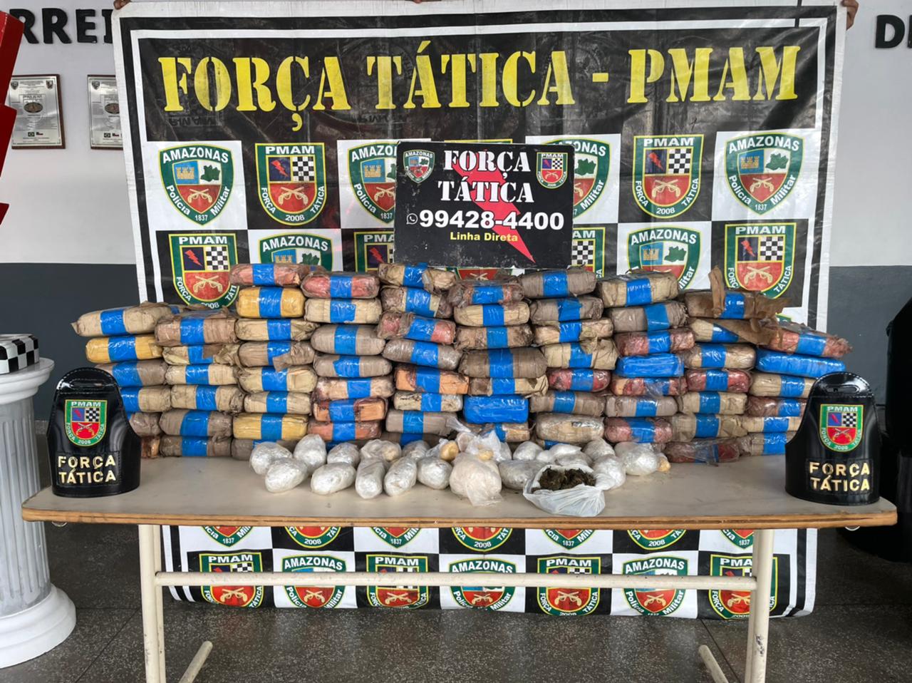 Equipe da Força Tática da Polícia Militar apreendeu, ontem (31/07), por volta das 16h, mais de 100 quilos de entorpecentes que foram abandonados por infratores no bairro Zumbi dos Palmares, zona leste. As drogas estão avaliadas em R$ 500 mil