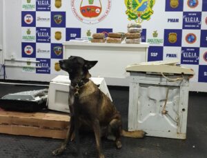 Em seguida, a cadela indicou aos policiais que no porão da embarcação, dentro de aparelhos micro-ondas e TV, estavam escondidos mais quatro tabletes de drogas. Após verificarem as câmeras de segurança, as equipes identificaram um homem entregando as encomendas, ainda no município de Tefé.