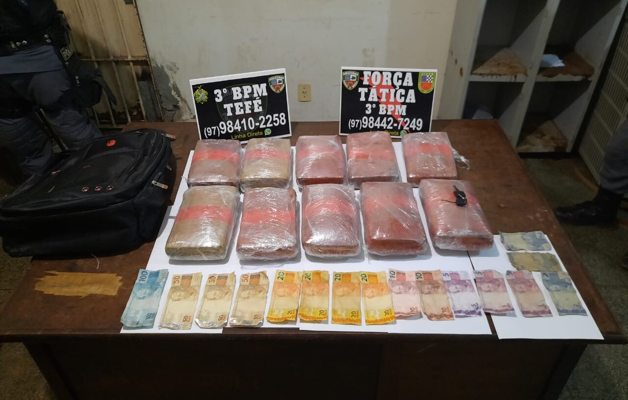 Militares lotados no 3° Batalhão de Polícia Militar (BPM) de Tefé (distante 523 quilômetros da capital) prenderam, na noite desse domingo, dia 29, um homem de 23 anos com mais de 10 quilos de drogas no formato de tabletes, escondidos dentro da residência de um suposto homem envolvido com o tráfico de drogas na cidade.