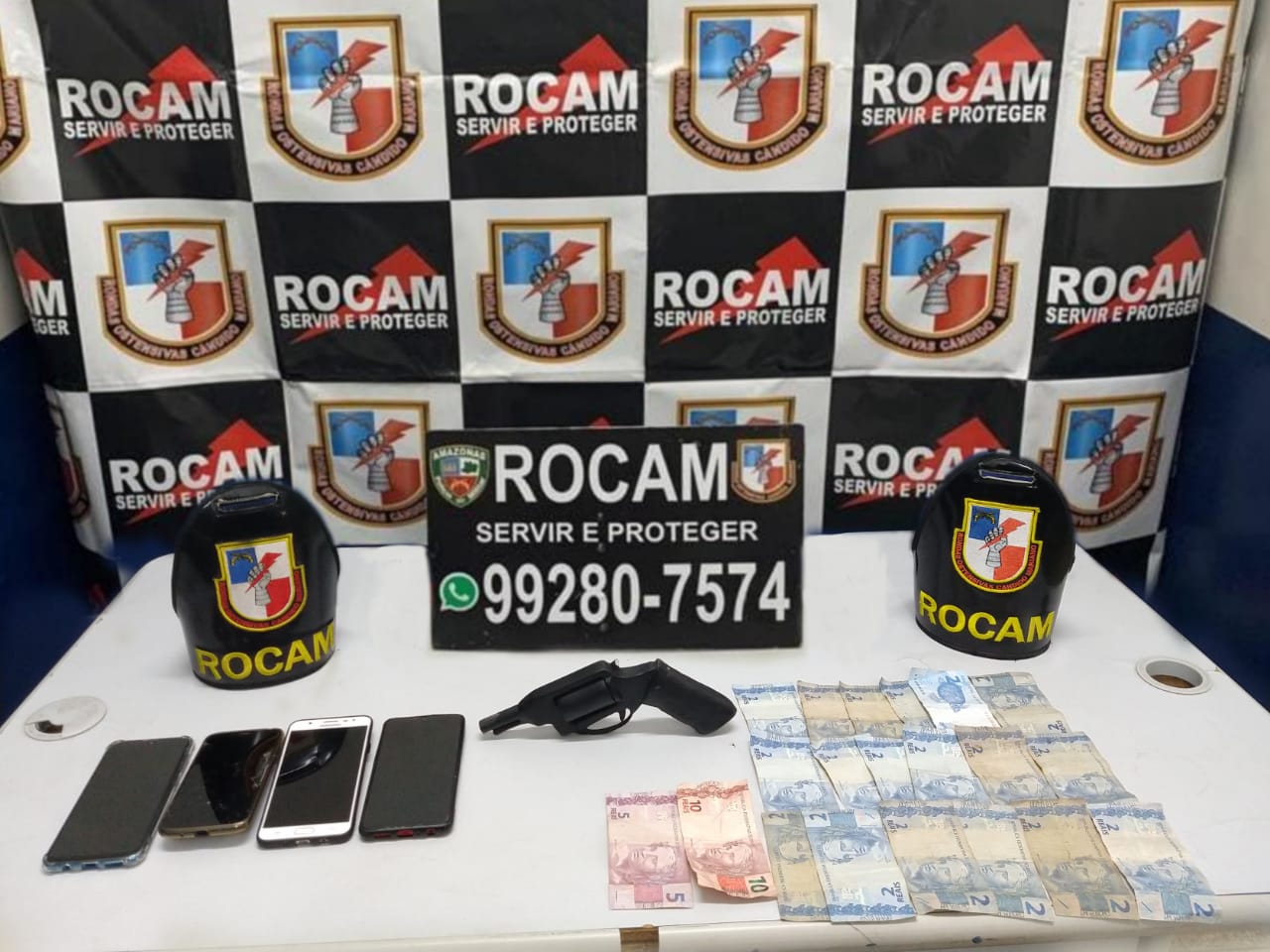 Policiais militares das Rondas Ostensivas Cândido Mariano (Rocam) prenderam na noite desta quarta-feira, dia 02, um adolescente de 15 anos por atos infracionais análogos aos crimes de roubo e posse ilegal de simulacro de arma de fogo no bairro Cidade Nova, zona Norte da capital. Com ele, os policiais apreenderam um simulacro tipo revólver, quatro aparelhos celulares e a quantia de R$ 51,00 em espécie.