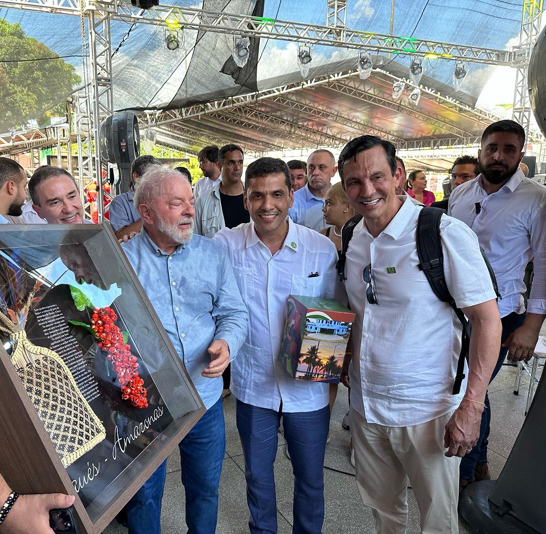 O presidente Luiz Inácio Lula da Silva (PT) esteve em Parintins nessa sexta-feira (4) para a ligação do município no Sistema Interligado Nacional (SIN) de energia, o famoso Linhão de Tucuruí, bem como para o relançamento do programa Luz para Todos. O evento contou com a presença de pelo menos 14 prefeitos do interior amazonense. Nas redes sociais, os prefeitos Bi Garcia (União), de Parintins, Mário Abrahim (Podemos), de Itacoatiara, e Júnior Leite (Podemos), de Maués, postaram fotos do encontro com o presidente.