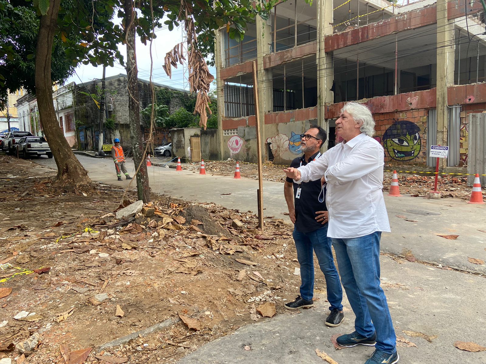 A despoluição visual no tecido urbano foi pauta com equipe da Unidade Gestora de Projetos Municipal de Energia (UGPM) e Implurb no local das obras, onde se percebe, com o início de demolições de muros para abrir o Largo de São Vicente, um emaranhado de fios aéreos.