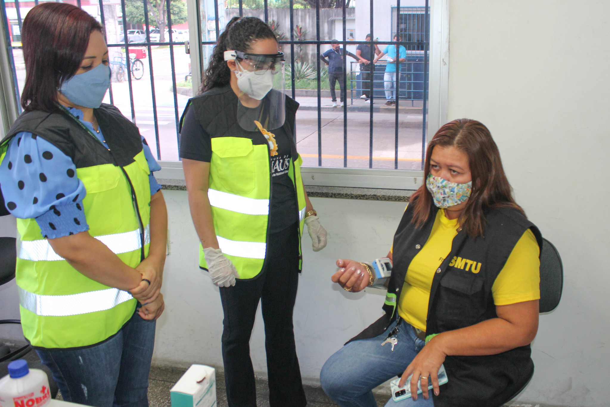 A Prefeitura de Manaus, por meio do setor de Serviço Social do Instituto Municipal de Mobilidade Urbana (IMMU), iniciou, nesta segunda-feira, 22/2, uma série de visitas aos fiscais de transporte do órgão que atuam nos terminais de integração da capital. No primeiro dia de ações, assistentes sociais promoveram aferição de temperatura, medição de pressão arterial e orientaram sobre serviços e demais dicas de saúde aos funcionários que atuam diretamente com os usuários de transporte público no Terminal de Integração 2, no bairro Cachoeirinha, zona Sul.
