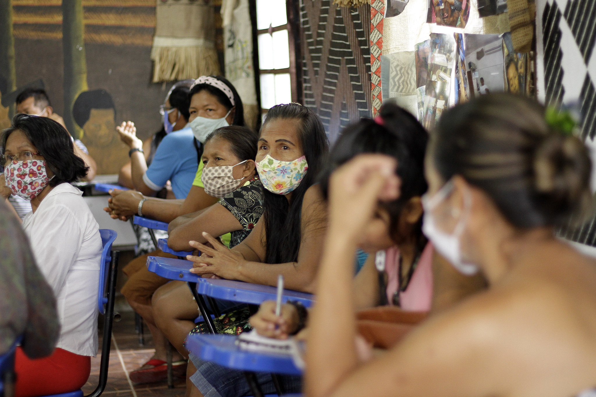 Artistas da comunidade tikuna Wotchimaücü, localizada no bairro Cidade de Deus, zona Norte, contaram com o apoio da Prefeitura de Manaus, por meio da Fundação Municipal de Cultura, Turismo e Eventos (Manauscult), na manhã deste domingo, 11/4, para participar do edital Prêmio Manaus 2021 Zezinho Corrêa. Uma equipe formada por técnicos do Conselho Municipal de Cultura (Concultura) apresentou aos artistas indígenas o passo a passo de como se inscrever, as categorias e os respectivos prêmios, que constam no edital.