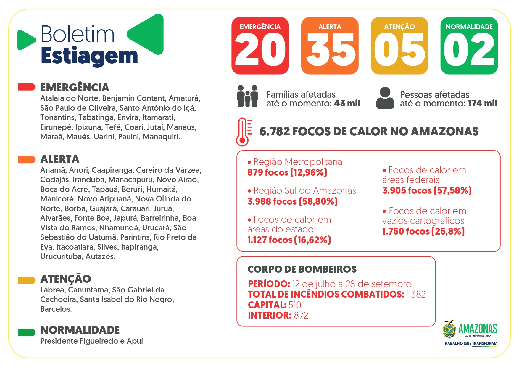O Governo do Amazonas, por meio do Comitê de Intersetorial de Enfrentamento à Situação de Emergência Ambiental, inicia, nesta sexta-feira (29/9), a divulgação de um boletim com informações atualizadas sobre a estiagem no Estado.