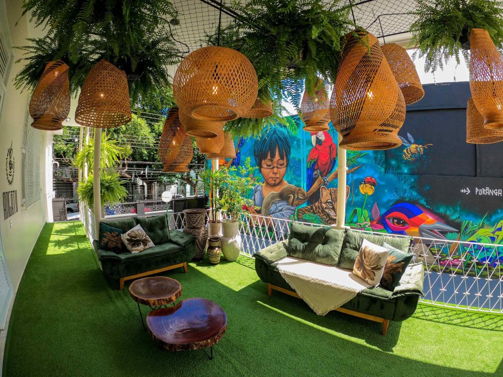 Com uma decoração inspirada nos elementos culturais do Amazonas, como artesanatos feitos por indígenas e grafismos de elementos que ilustram a cultura, flora e fauna do estado, o Angatu também conta com um espaço dedicado ao Festival de Parintins, com os bois Garantido e Caprichoso e um grafismo inspirado no Bumbódromo da Ilha da Magia, tendo espaços ótimos para lindas fotos.