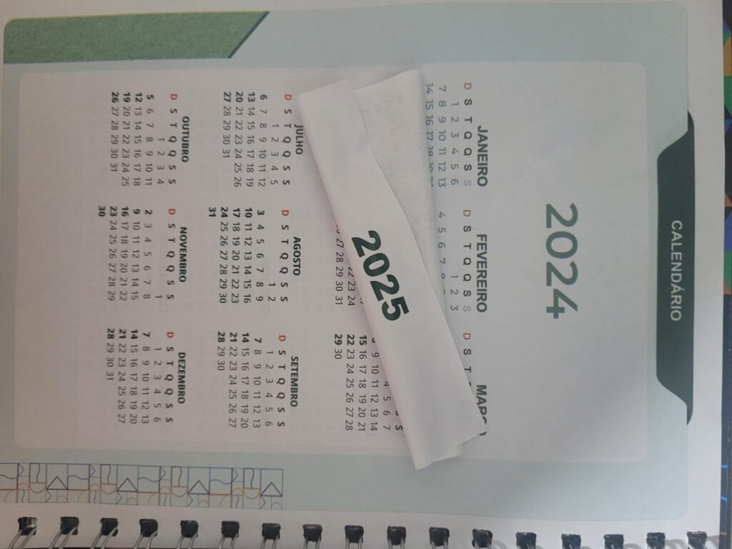 Conforme fotos enviadas junto à denúncia, o planner possui um adesivo para cobrir a data do ano passado, porém o calendário dentro do mesmo consta apenas as datas de 2024. “Se você pegar esse planner, a capa nem dura é. Material de péssima qualidade. Parece uma tampa de caixa molhada”, disse a denunciante.