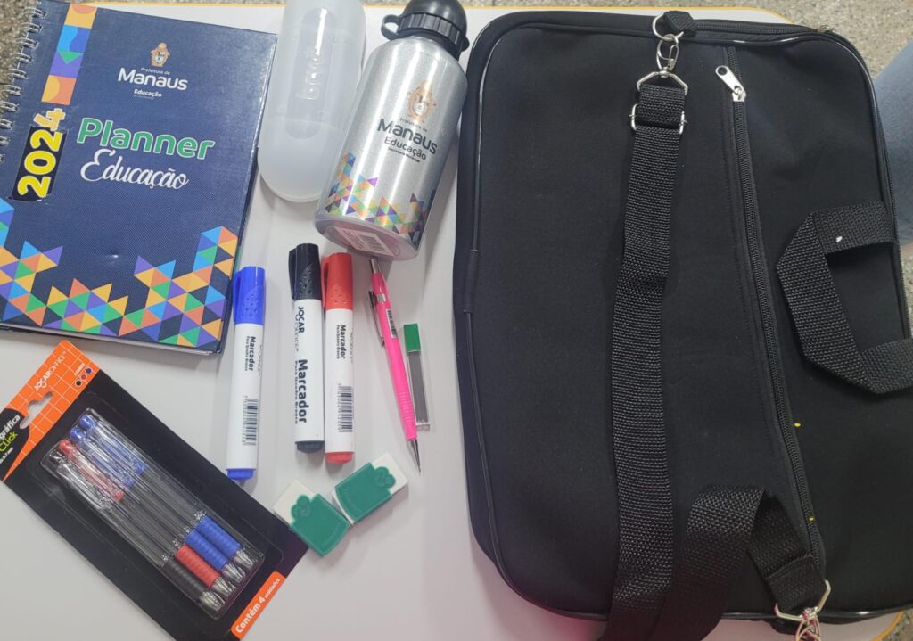 De acordo com a denúncia feita neste domingo (23) ao Dia a Dia Notícia, professores de creches, dos Cmeis e do ensino fundamental receberam o “kit do professor” composto por um planner com a data de 2024, um kit de canetas, pincéis para quadro, apagador, borrachas, grafite, uma garrafa tipo squeeze e uma bolsa. No material não consta informações dos fornecedores. A reportagem também verificou que não foram todos os professores que receberam os kits, somente algumas escolas municipais e creches.