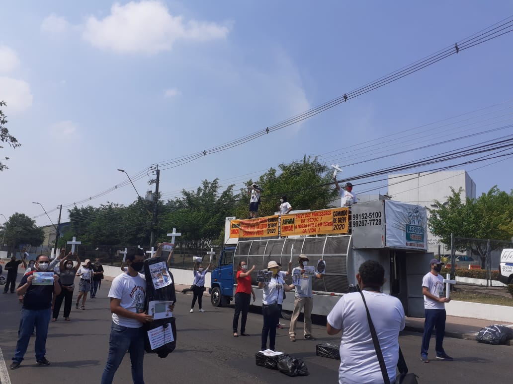 “O objetivo do ato é conseguir uma reunião com o governador Wilson Lima para tratar sobre a greve, a suspensão das aulas presenciais e explicação sobre os descontos nos salários dos professores”, disse o professor Lambert Melo.