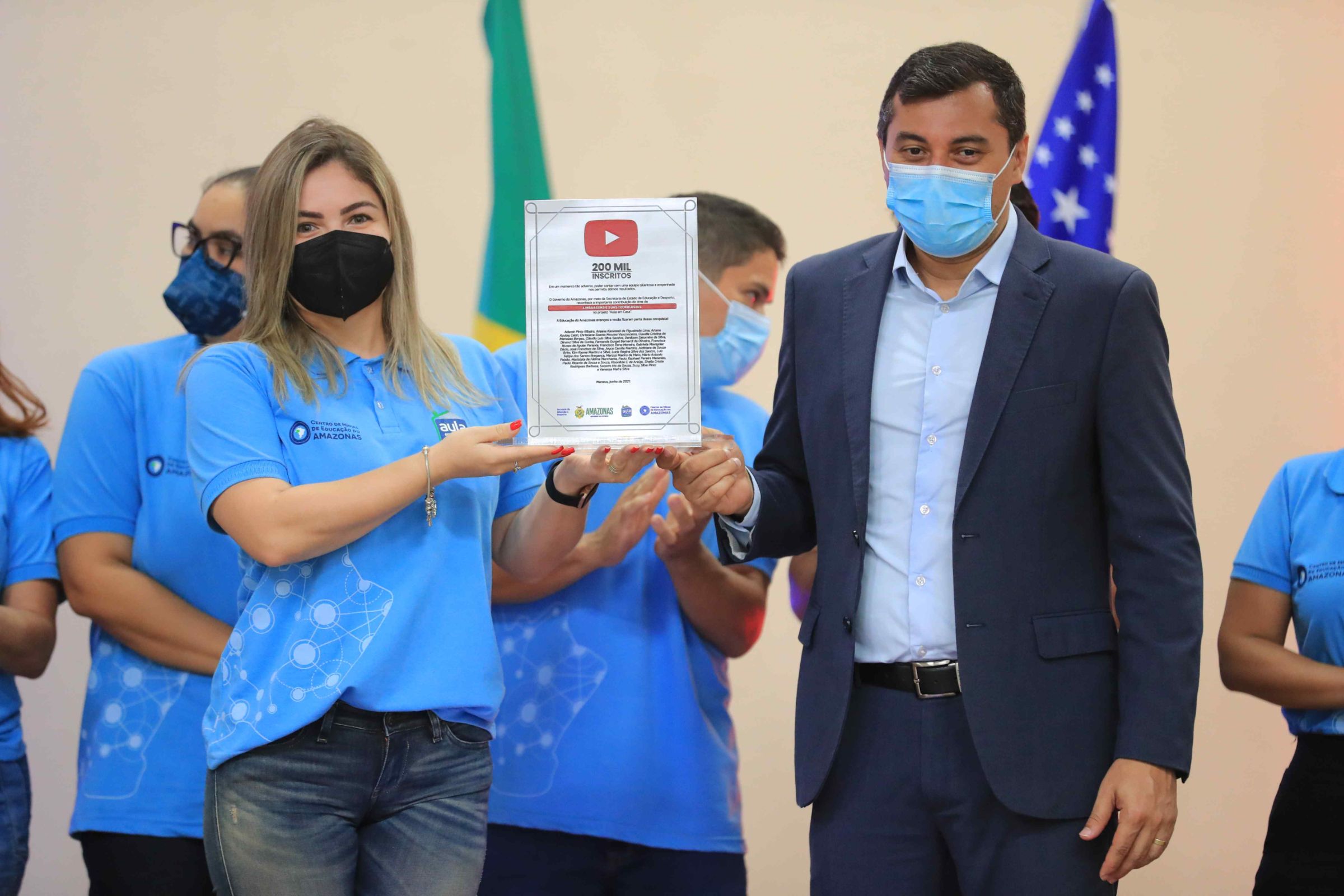 O governador Wilson Lima anunciou, nesta sexta-feira (18), que os cerca de cem profissionais da educação diretamente envolvidos com o programa “Aula em Casa” receberão uma gratificação no valor de um salário. Esses servidores conquistaram o “Prêmio Prata” para criadores de conteúdo do Youtube. O anúncio da gratificação ocorreu durante encontro com os professores, pedagogos e técnicos do Centro de Mídias de Educação do Amazonas (Cemeam) e da Secretaria de Educação e Desporto.