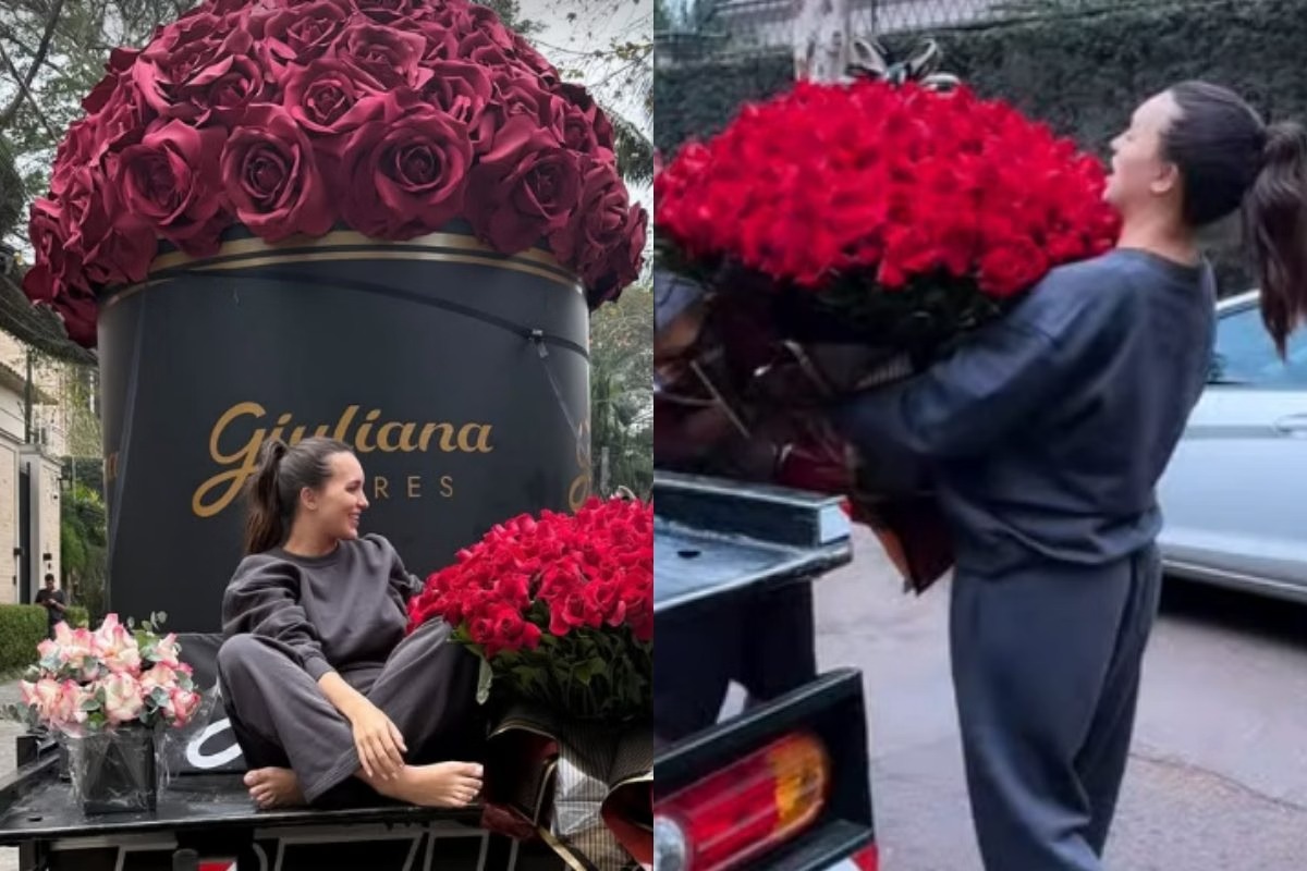 A influenciadora Rafa Kalimann compartilhou nesta sexta-feira (29) um momento especial ao revelar que foi surpreendida pelo namorado, o cantor Nattan com um caminhão repleto de flores.