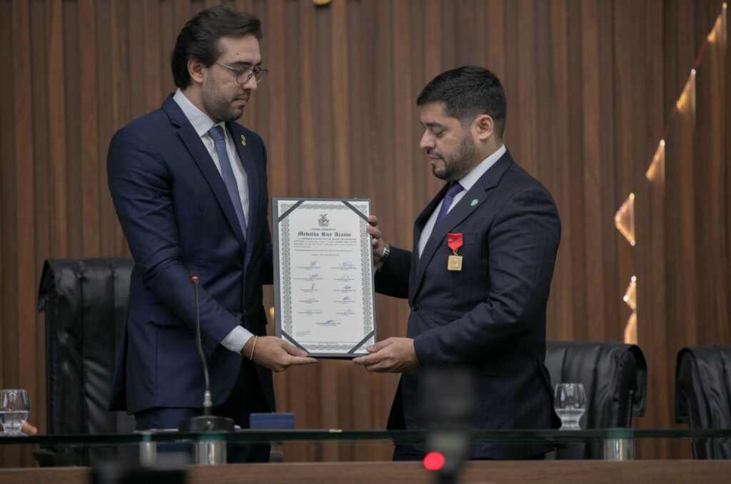 O reitor da Universidade do Estado do Amazonas (UEA), Prof. Dr. André Luiz Nunes Zogahib, foi condecorado na terça-feira (14), com a Medalha Ruy Araújo, um reconhecimento público pela dedicação, empenho e serviços prestados à sociedade amazonense. Considerada a maior comenda concedida pelo Poder Legislativo Estadual, a entrega da medalha ocorreu na Assembleia Legislativa do Estado do Amazonas (Aleam), em sessão presidida pelo autor da propositura, o deputado estadual Thiago Abrahim (União Brasil).