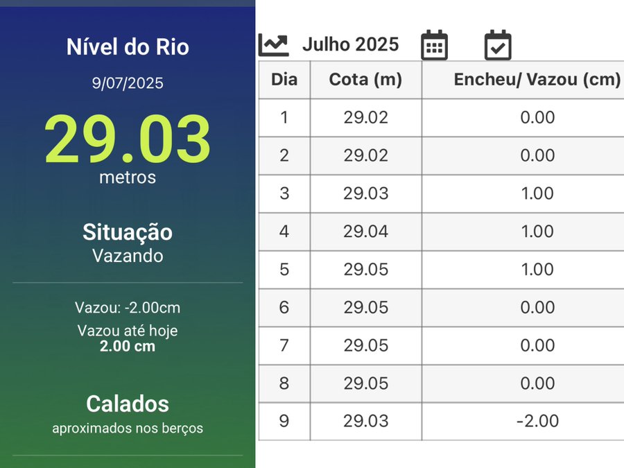 O rio Negro registrou uma queda de dois centímetros nesta quarta-feira, 9 de julho, marcando o início da vazante. De acordo com dados do Porto de Manaus, a cota atual do rio é de 29,03 metros. Essa diminuição ocorre depois de um período de estabilidade, sem variações significativas desde o último domingo (5).