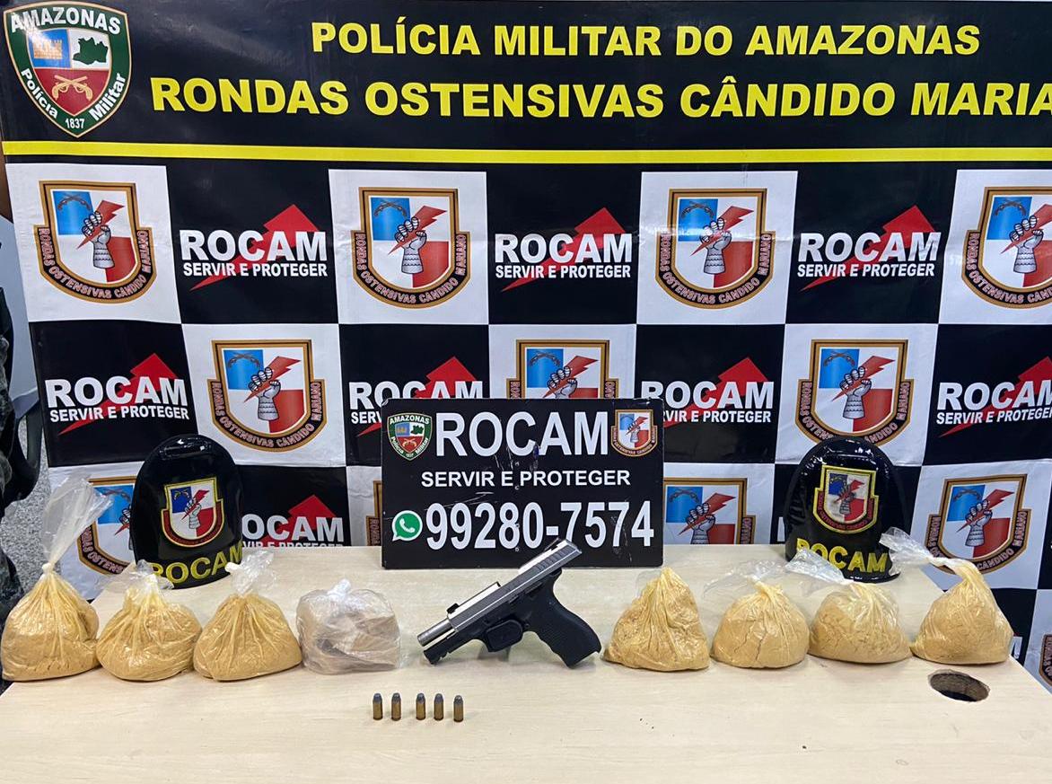 Policiais militares das Rondas Ostensivas Cândido Mariano (Rocam) prenderam na noite dessa terça-feira, dia 08, um homem de 34 anos, portando arma de fogo e entorpecentes, quando transitava em um veículo Gol G6, placa PHD-2H17, na avenida Constantinopla, bairro Redenção, zona centro-oeste da capital amazonense.