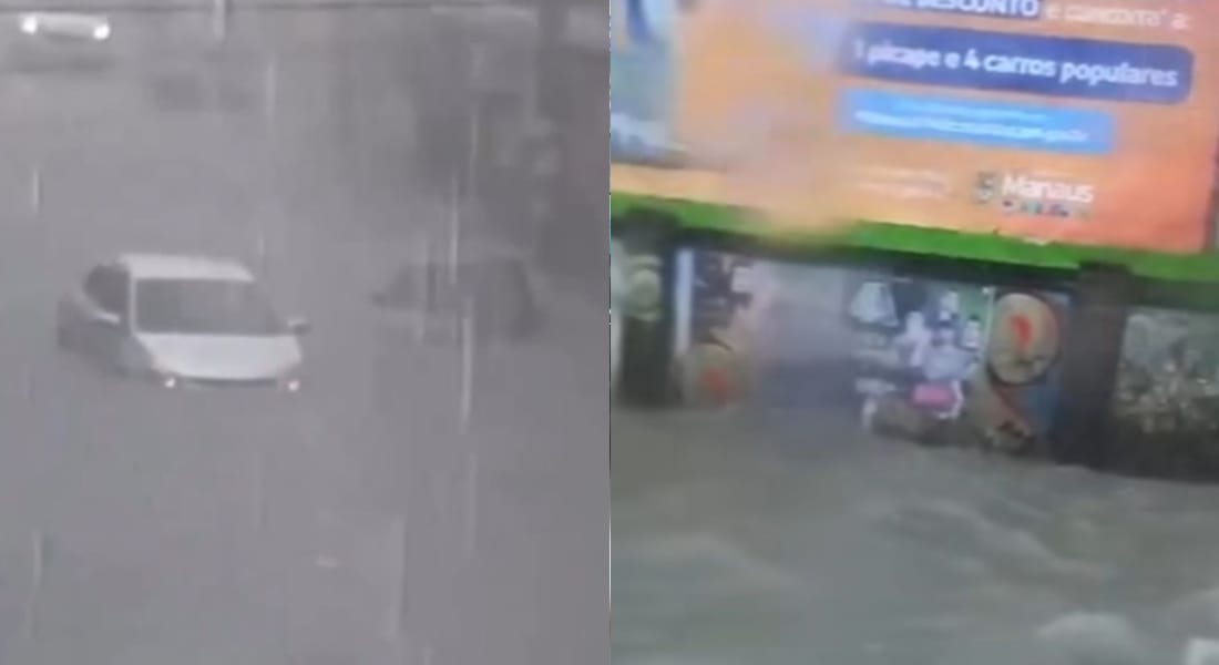 As fortes chuvas inundaram a avenida Mário Ypiranga, próximo ao Mirage Park, localizado na zona Centro-Sul da cidade. Além disso, vários veículos ficam debaixo d’água na rua Manuel Lôbo d’Almada, no Centro da capital do Amazonas.