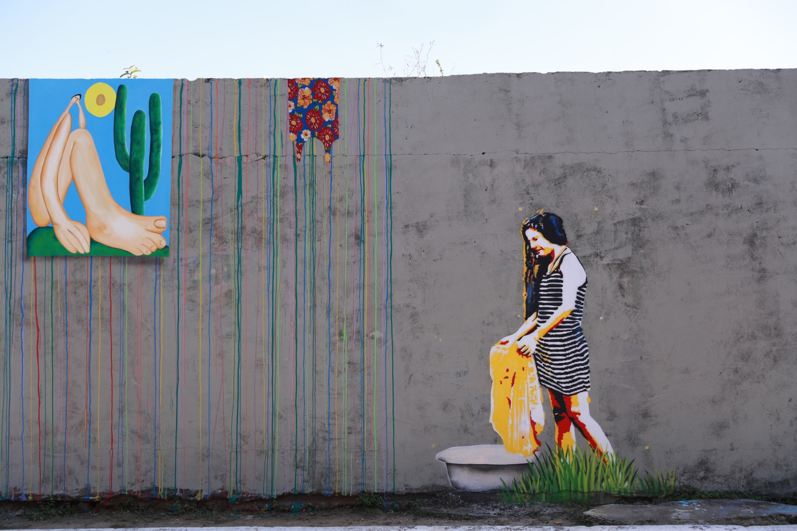 A obra “Entre a biografia e a arte”, do artista visual Josinaldo Mattos, traz um misto de vivências pessoais com o imaginário do caboclo parintinense. As pinturas permitem uma interação com quem passa pelo muro.