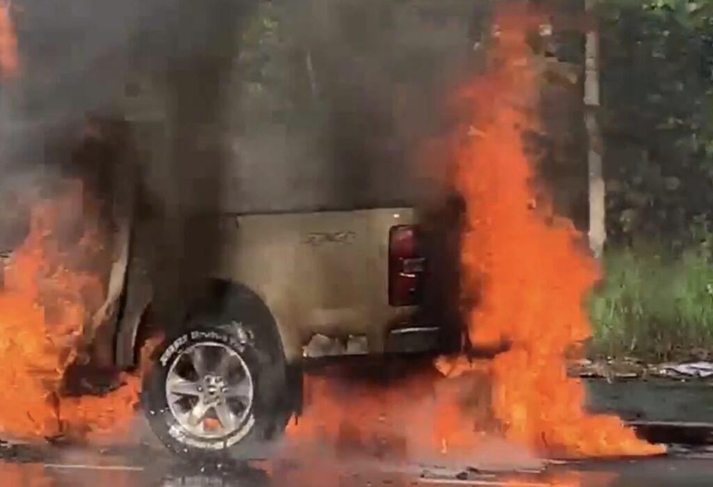 Caminhonete S10 pega fogo na avenida do Turismo, próximo à ponte do Tarumã em Manaus 22 de dezembro de 2025