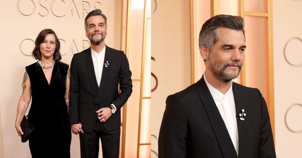 Oscar 2026: Wagner Moura passa pelo tapete vermelho da premiação ao lado de sua esposa 15 de março de 2026