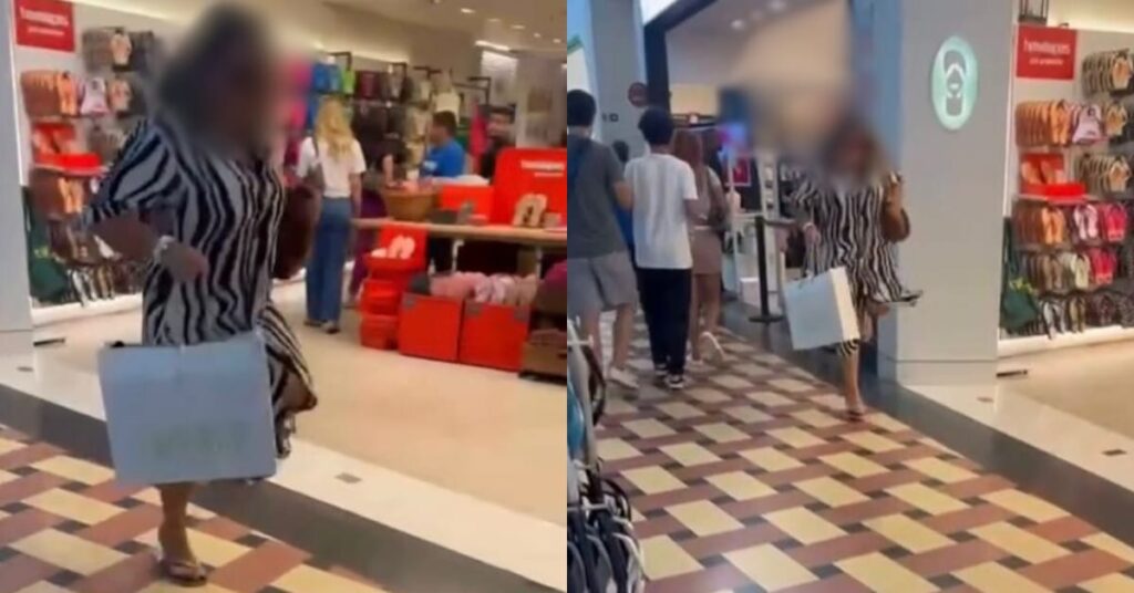Mulher passa pulando em frente a Havaianas de Manaus em forma de protesto após campanha 29 de dezembro de 2025