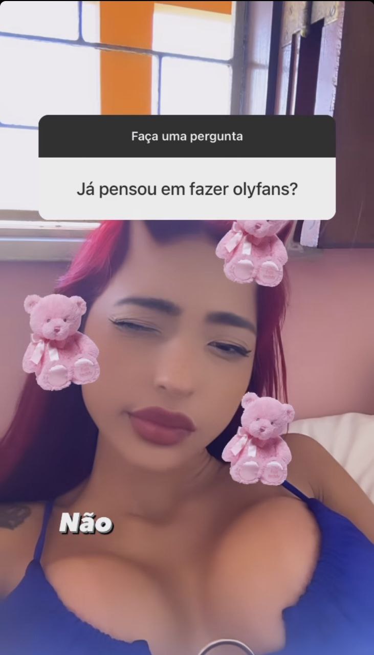 Em agosto deste ano, um fã que questionou se ela teria vontade de fazer uma conta no Privacy ou Onlyfans, plataformas de conteúdo +18.