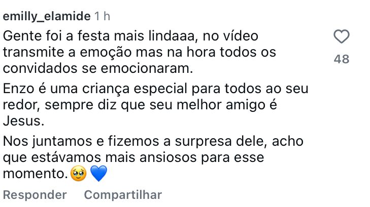 Um menino autista de 10 anos emocionou convidados ao realizar o sonho de ter uma festa de aniversário com o tema de Jesus, em Manaus. Durante a celebração, o momento mais marcante foi a chegada de um homem caracterizado como “Jesus”. O momento foi registrado em vídeo e vem repercutindo nas redes sociais, mostrando a reação do garoto, que chorou e abraçou o personagem.
