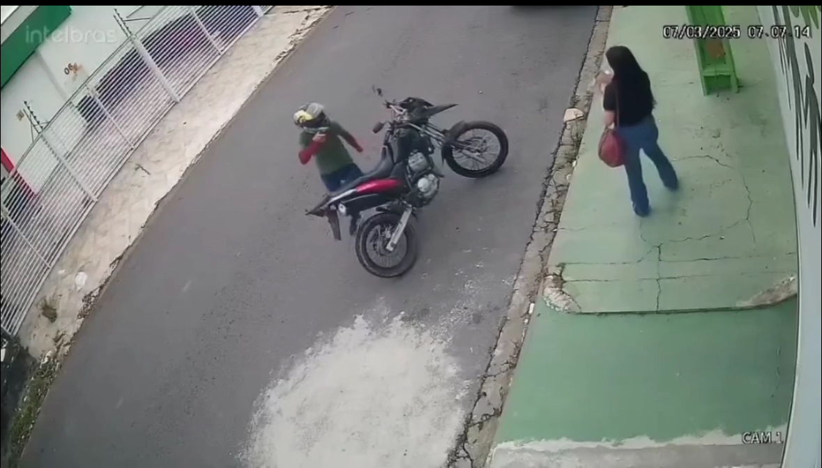 Imagens de câmeras de segurança mostram o momento do primeiro crime, quando uma mulher caminhava por uma rua pouco movimentada. O criminoso, que estava em uma motocicleta, se aproximou da vítima, sacou uma arma e anunciou o assalto.