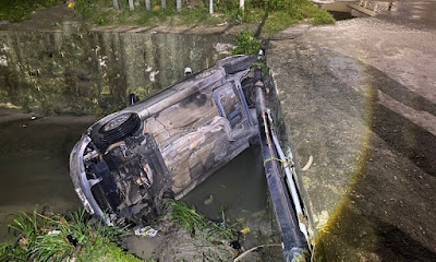 Acidente: carro capota debaixo de viaduto em Manaus e deixa três vítimas
